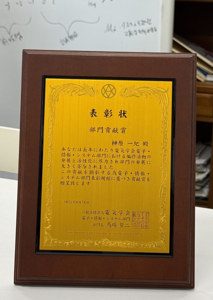 また,同日,榊原教授は同部門の部門貢献賞も受賞しました.おめでとうございます!