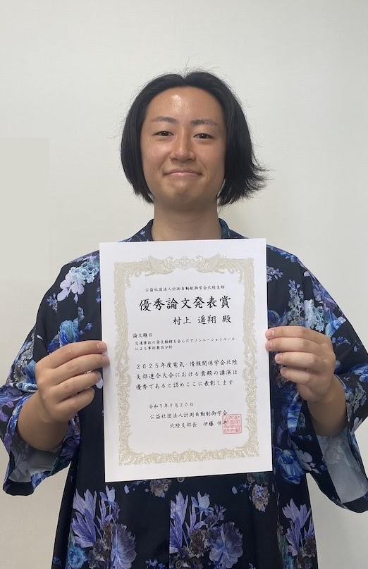 榊原研究室の村上さんが,計測自動制御学会北陸支部の2025年度 電気・情報関係学会北陸支部連合大会 優秀論文発表賞を受賞しました.おめでとうございます!